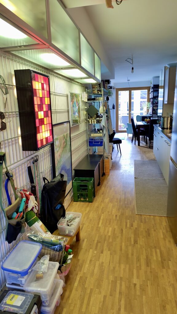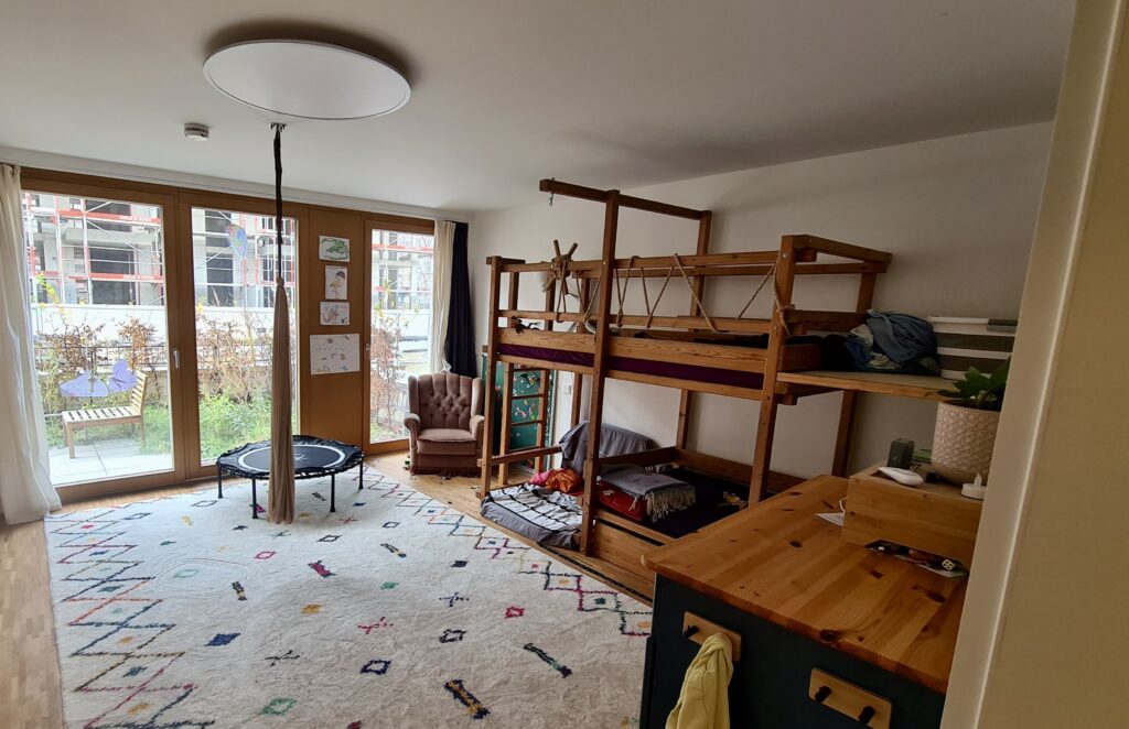 Seit über einem Jahr wohnen die meisten von uns inzwischen in der Annemarie-Renger-Straße. Wir fanden, da ist es an der Zeit, mal zu schauen, wie die Wohnungen bewohnt aussehen, die viele von uns in der Bauphase schon beim Fegen, Parkett Abkleben oder Fenster Putzen kennengelernt hatten. Wir waren neugierig, welche Lösungen die Nachbar*innen wohl für Küche, Nischen oder Erker gefunden hatten. Am 16. November war es soweit. Um 11 Uhr öffneten sich mit viel Hallo zuerst die Türen im Erdgeschoss. Es gab viel zu erzählen, nachzufragen und zu bestaunen, sodass der Zeitplan beinahe schon am Anfang ins Rutschen geriet. Dann ging es in den ersten Stock und nach einer Mittagspause waren der zweite, dritte und vierte Stock das Ziel. Es war toll zu sehen, wie kreativ die Nachbar*innen sind: Da gibt es große Lösungen wie Wandschränke, die sich als Geheimschrank entpuppen, hinter dem sich eine Kammer für mehr Stauraum verbirgt, und kleine Lösungen wie ein kleines Regal in einer Mini-Nische. Es finden sich kreative Lichtlösungen – oder Zwischenlösungen, wenn die passende Lampe noch nicht gefunden wurde – und tolle Spiellandschaften in großen und kleinen Kinderzimmern genauso wie Harry Potter-Räume unter Maisonette-Treppen, gemütliche Lese-Ecken im Erker oder versteckte Sportmöglichkeiten im Wohnzimmer und noch Vieles mehr. Danke an alle, die ihre Türen geöffnet haben und den Nachbar*innen dabei vielleicht noch die ein oder andere Idee mitgegeben haben.